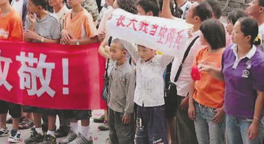 这个举着“长大我当空降兵”横幅的孩子叫程强,地震发生时,家住四川什邡的程强正和小伙伴们游泳,当他从池塘爬上岸,眼前看到的只有无尽的废墟,他和家人陷入恐慌和无助的时候,是空降兵打着“黄继光生前所在部队”的红旗进入什邡救灾。在最后送别救援部队的人群中,12岁的程强举起了“长大我当空降兵”的横幅,高中时,程强报名参军,后来他不仅成为了一名空降兵,还是“黄继光班”的班长。如今,这个“地震男孩”参加了新中国成立70周年的大阅兵,用一腔热血传承了军人精神。