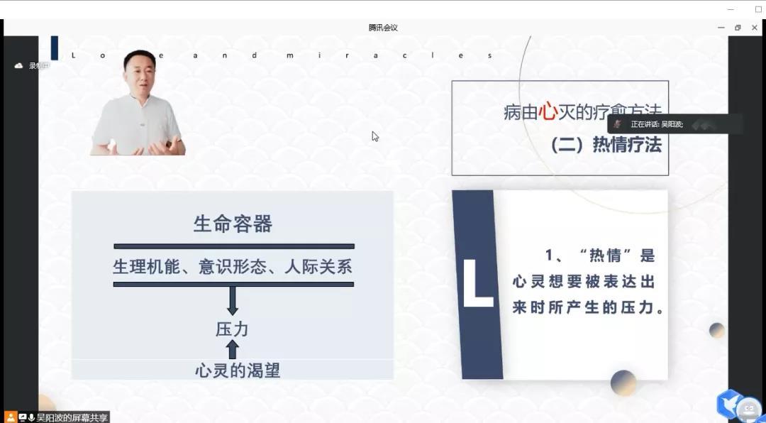 今日,爱与奇迹平台线上工作坊《病由心灭》持续进行中,课程形式以腾讯会议线上直播方式有序进行。