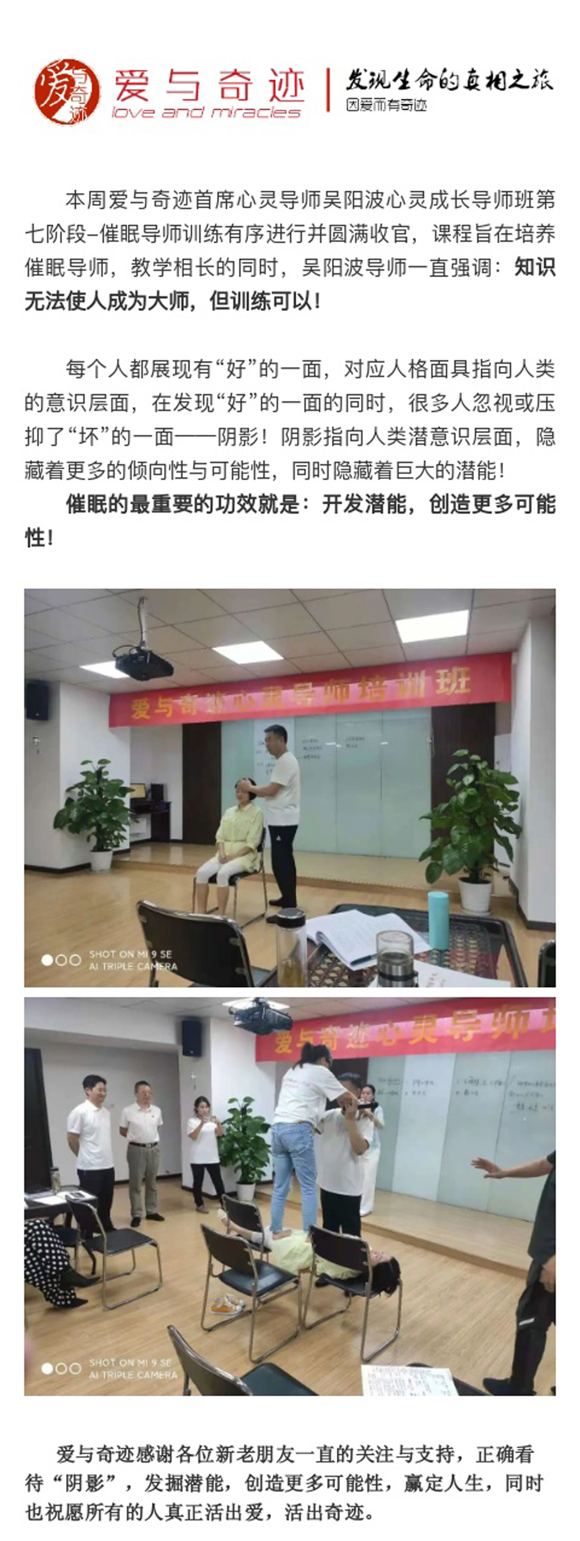 武汉丨9月21-26日吴阳波导师《催眠导师训练》身心灵导师班第七阶段圆满收官